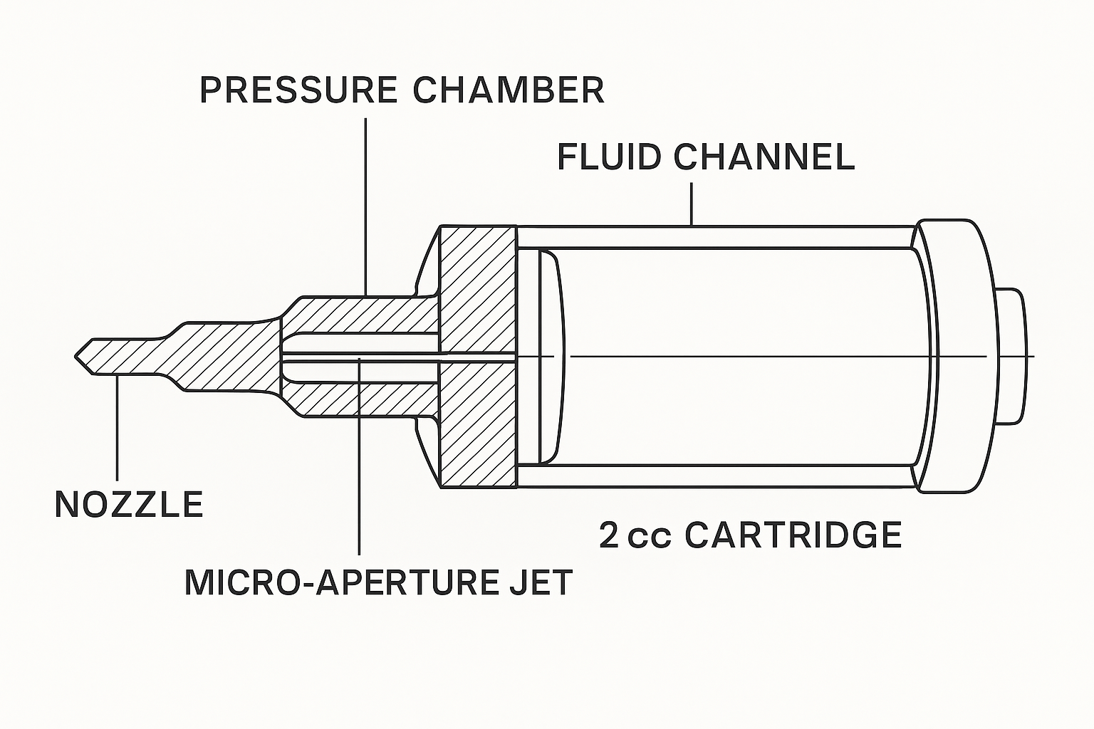 Sealed, aseptic, needlefree cartridge syringe carrying the vaccine or therapeutic, designed to integrate with the needle-free delivery system.